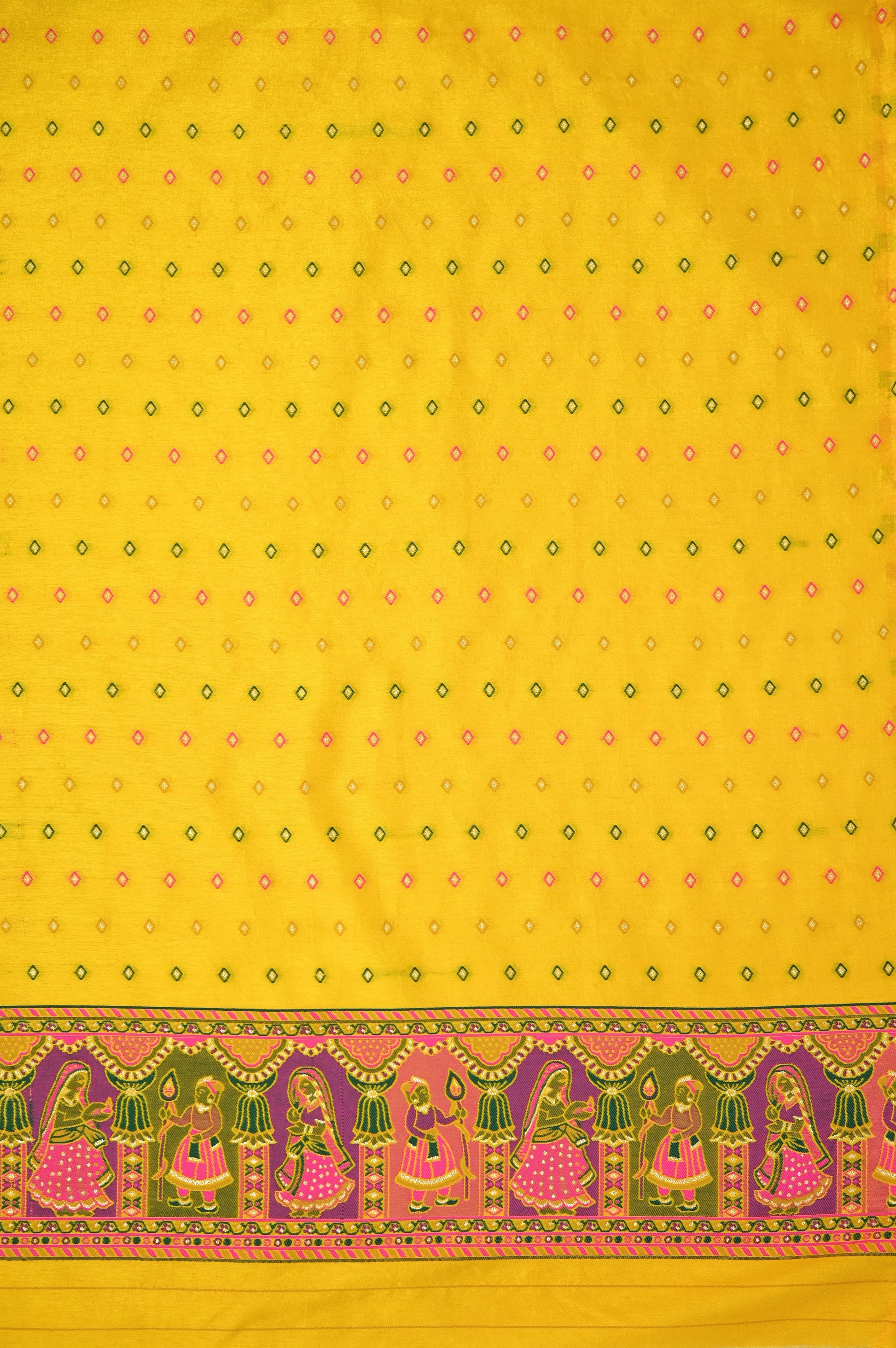 This yellow crepe saree is expertly designed with a beautiful bright yellow with multicolor printed pattern, adding a touch of elegance to your wardrobe. Made with high-quality crepe fabric, this saree offers both comfort and style. Perfect for any occasion, it is a versatile addition to any wardrobe.