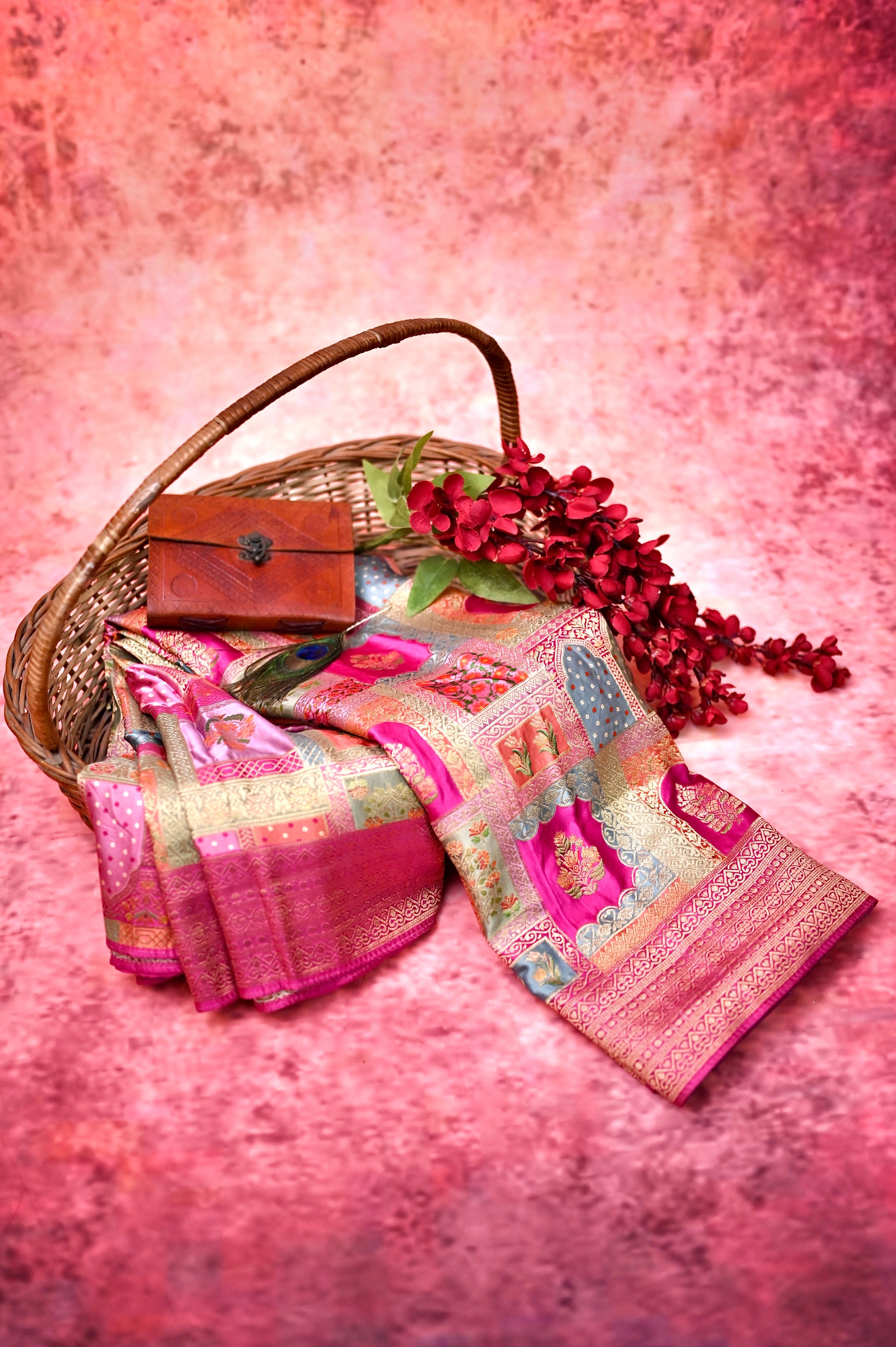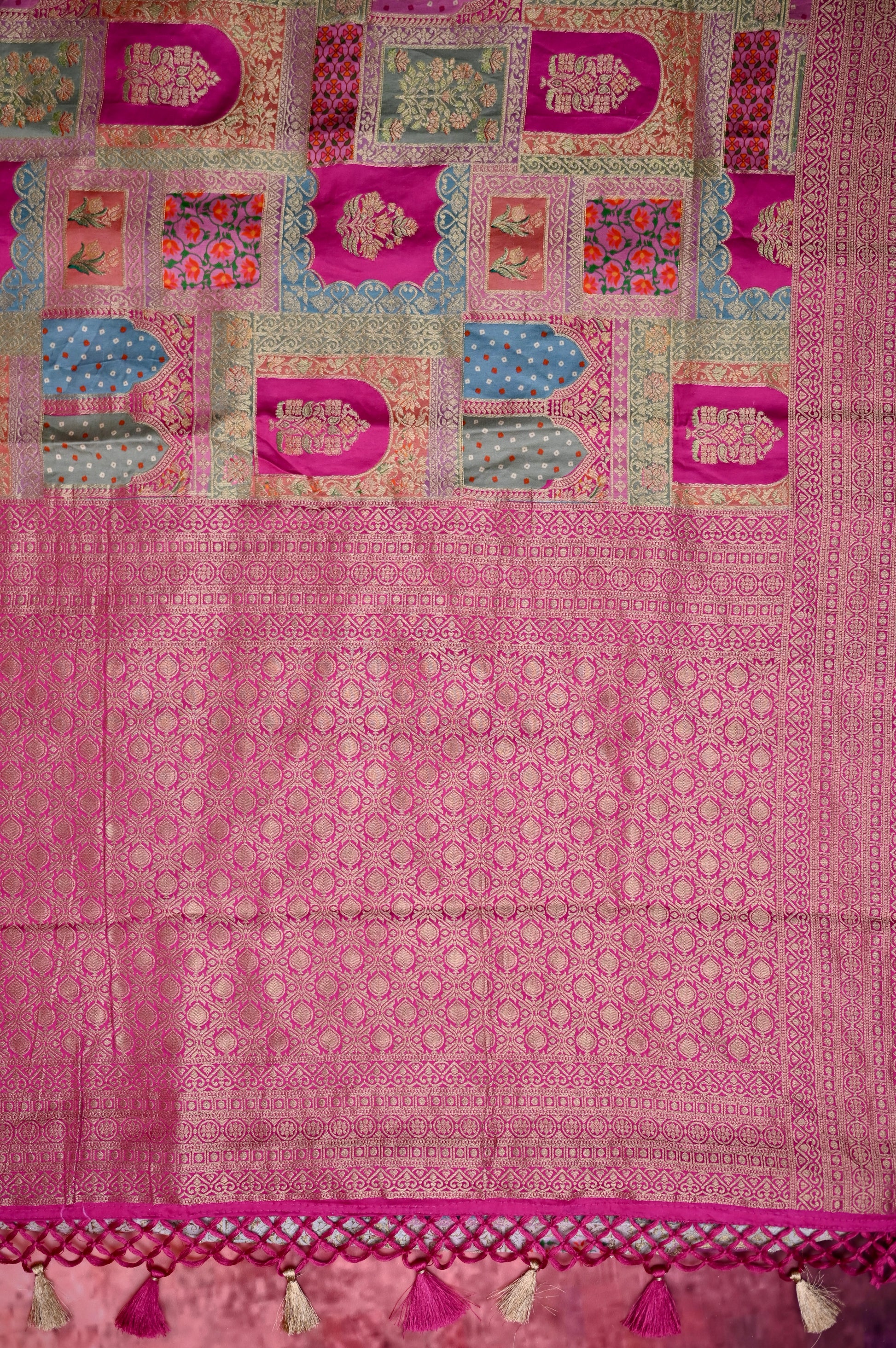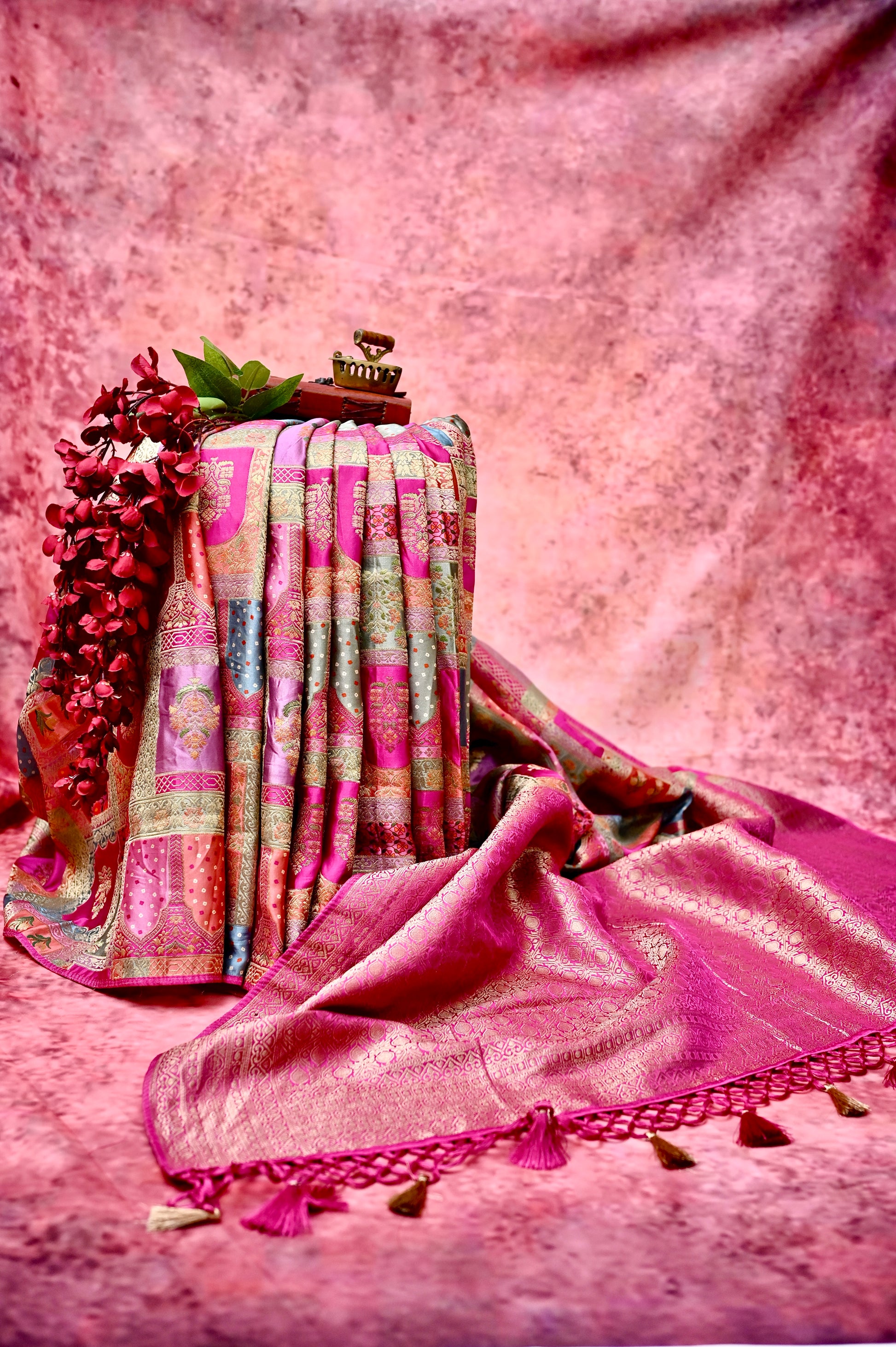 Radiate elegance with this exquisite Multicolor Banarasi Silk Saree. Woven with intricate craftsmanship, this saree showcases a vibrant blend of hues, bringing together tradition and contemporary charm. The rich silk fabric, adorned with delicate motifs, drapes beautifully, making it a perfect choice for weddings, festive celebrations, and special occasions. Complete with an unstitched blouse, it allows for a customised fit to enhance your unique style. Embrace the timeless beauty of Banarasi weaves with this stunning masterpiece!